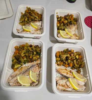 9.Arroz, tilápia e legumes (160g de arroz com 120g de tilápia e 100g de legumes assados)................R$38,90