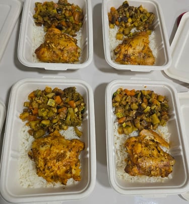 1. Arroz, frango desfiado e legumes (160g de arroz com 120g de peito de frango desfiado e 100g de legumes assados).........................................................R$19,90